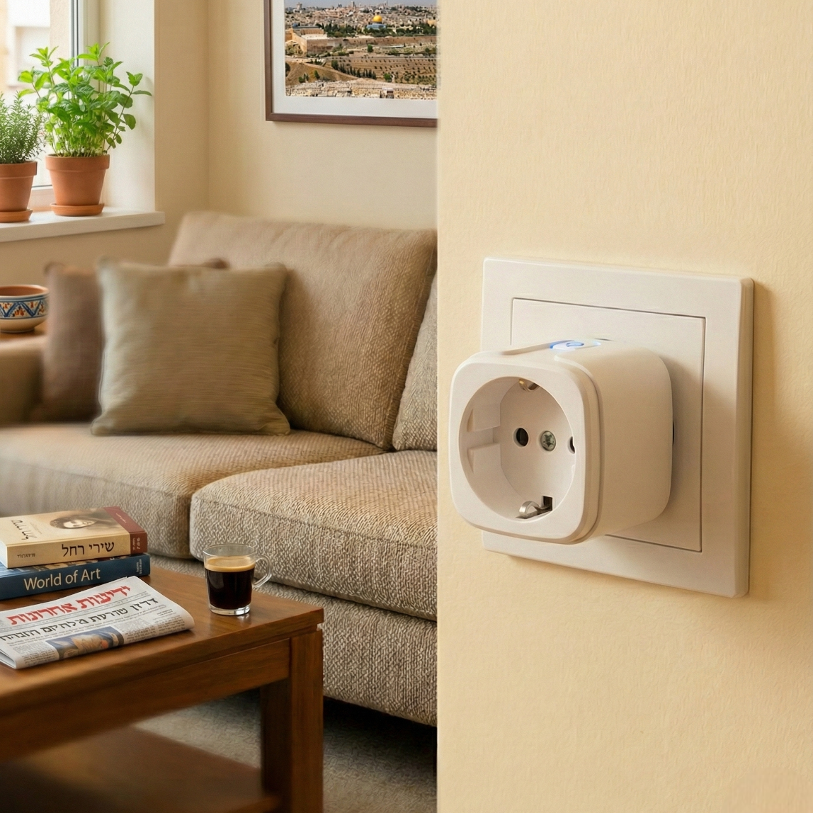 שקע חכם עם WiFi או Zigbee – שליטה מלאה מהנייד, כולל ניטור צריכת חשמל, תזמון והתאמה לאלקסה/Google.